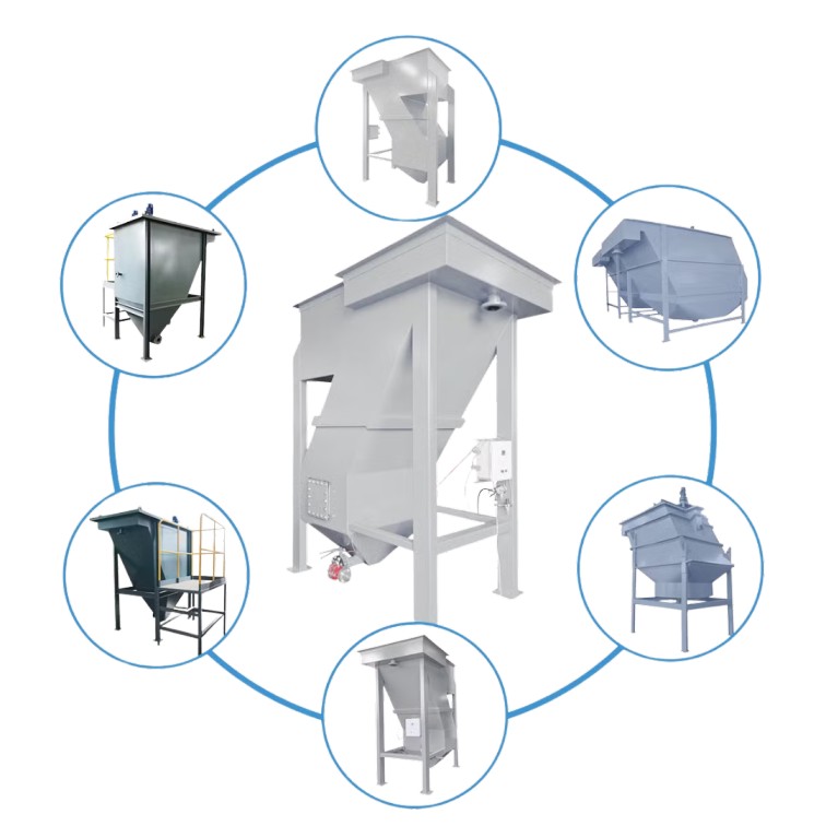 High-efficiency dewatering systems designed to extract moisture from sludge, producing a concentrated dry cake for disposal.